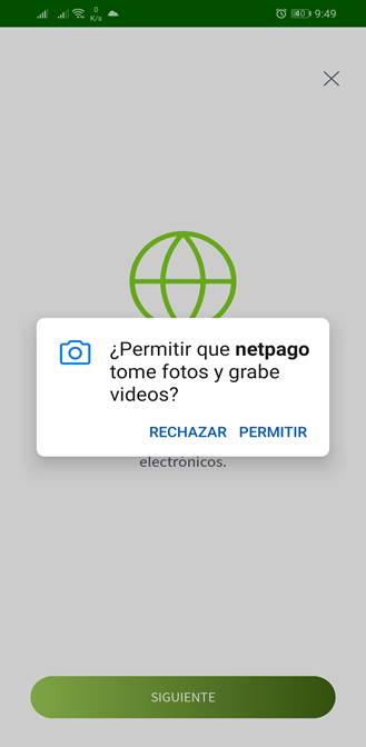 Luego se le solicitará permisos para NetPago pueda tomar fotografías y