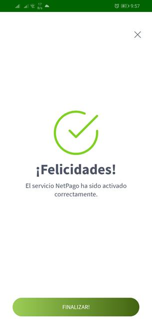 Una vez introducido el Número de Activación, NetPago le felicitará por